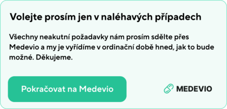 Pro objednání termínu konzultace osobně v Ambulanci klinické adiktologie Vsetín nebo online, prosím klikněte na odkaz níže, kde si na stránce Medevio vyberete termín a službu dle své potřeby. Vše je jednoduché, rychlé a mohu se díky tomu lépe věnovat živým lidem, kteří potřebují pomoc. Proto preferujeme komunikaci a objednávání přes zabezpečenou platformu Medevio nebo mobilní aplikaci Medevio. Volejte prosím jen v naléhavých případech. Požadavky přes Medevio zpracováváme průběžně během ordinační doby.